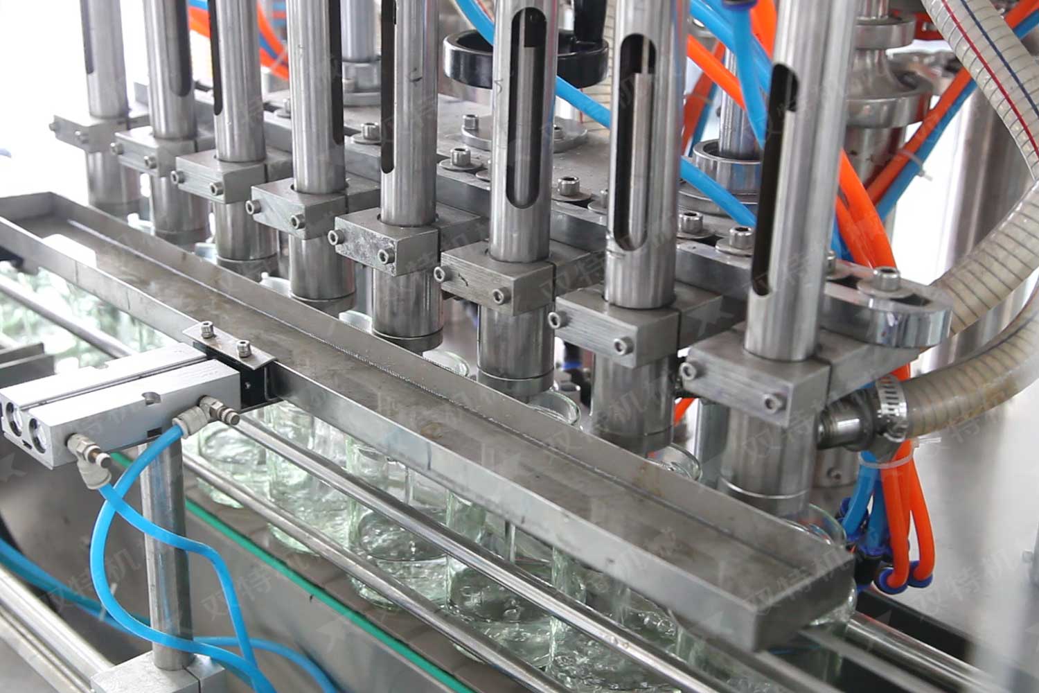 • 灌裝頭配置光電系統,能夠有效精確識別灌裝瓶定位狀況,進一步實現有瓶灌裝、無瓶少瓶不灌裝。