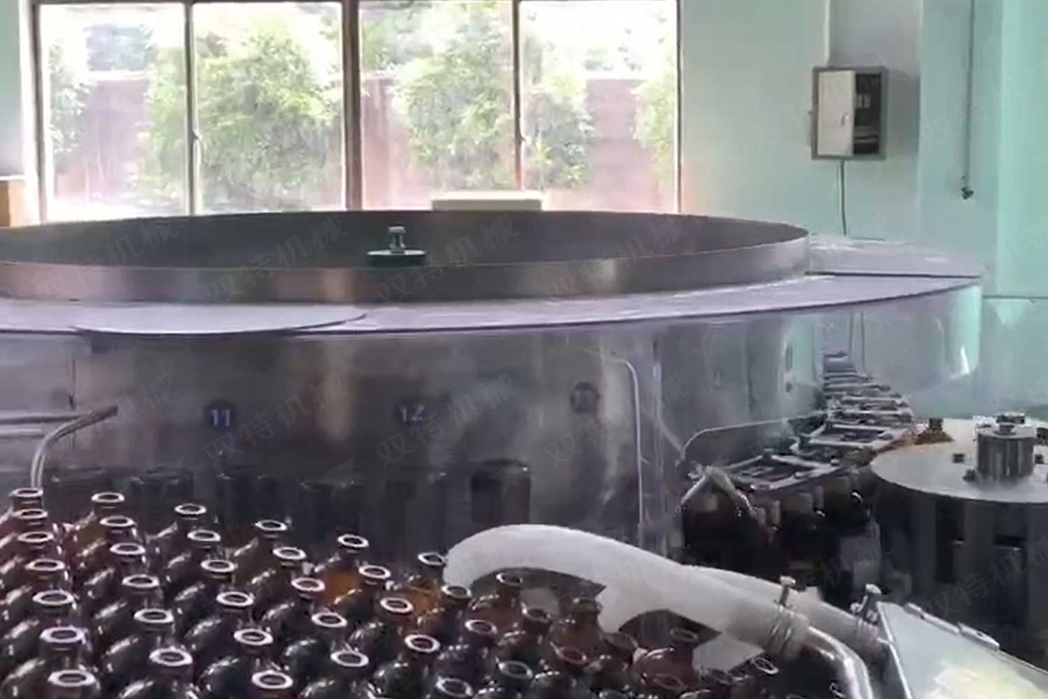 洗瓶機的過程是空瓶進入輸瓶螺桿,由星輪傳動到夾瓶工位,洗瓶的整個過程瓶底均懸空,其優點是著力點在瓶頭和頸部,是瓶子厚硬的部分,在清洗過程中不會損傷或壓扁,洗瓶機可調整多種瓶子,且調整簡便。