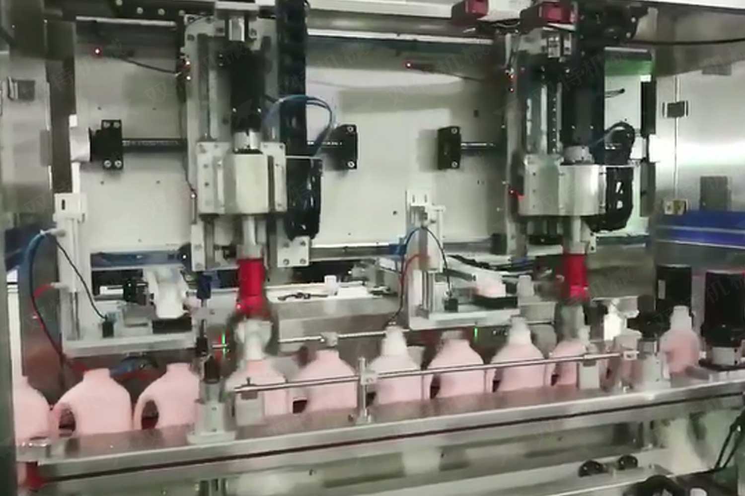 液體洗滌劑灌裝機是本公司先進灌裝機技術的基礎上,進行改造和創新的產品,其結構更加簡單合理,精確度高,操作更加簡便。液體洗滌劑灌裝機適用于醫藥、日化、食品、農藥及特殊行業,是理想的粘度流體充填設備。設計合理,機型小巧,立式結構,節省場地。操作方便,氣動部分均采用國外的氣動元件。洗滌劑灌裝機用于針對洗液、護理液、口服液、護發液、洗手液、護膚液、粉底液、洗發液、洗眼液、營養液、洗潔凈、沐浴露、香水及特殊行業的液體灌裝生產。